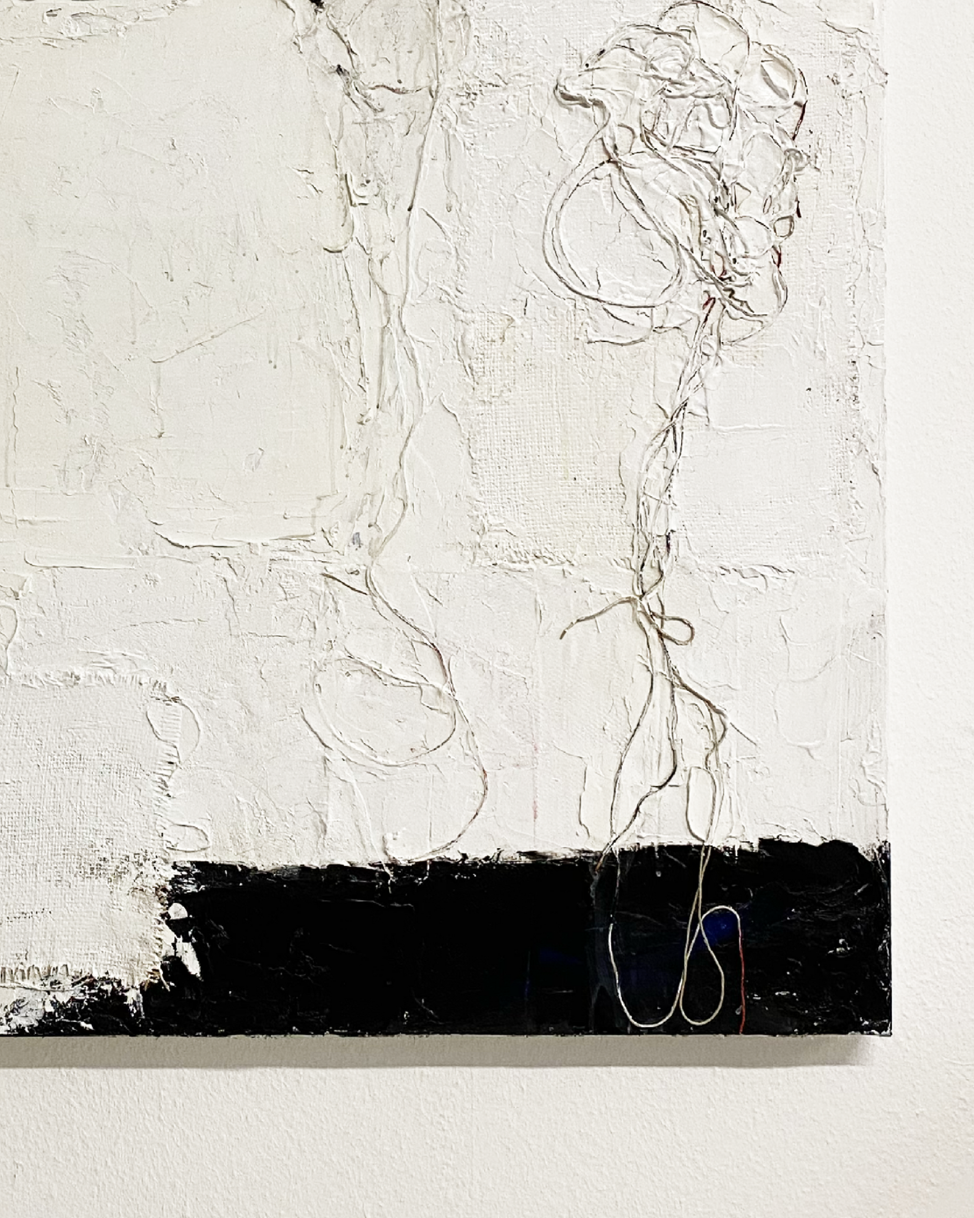 Ich arbeitete Schicht für Schicht – nicht, um ein Motiv zu formen, sondern um eine geistige Erfahrung zu strukturieren. Das rechte Feld entstand, als sich eingearbeitetes Material mit der dicken Acrylschicht verband – wie ein Echo aus einer anderen Realität. Das Werk ist nicht nur dekorativ, es ist existenziell. Es fragt nicht nach Schönheit, sondern nach Wahrheit. Und diese Wahrheit, das wusste ich während des Prozesses immer deutlicher, ist oft eine Frage der Grenze. Was bleibt jenseits der Linie?