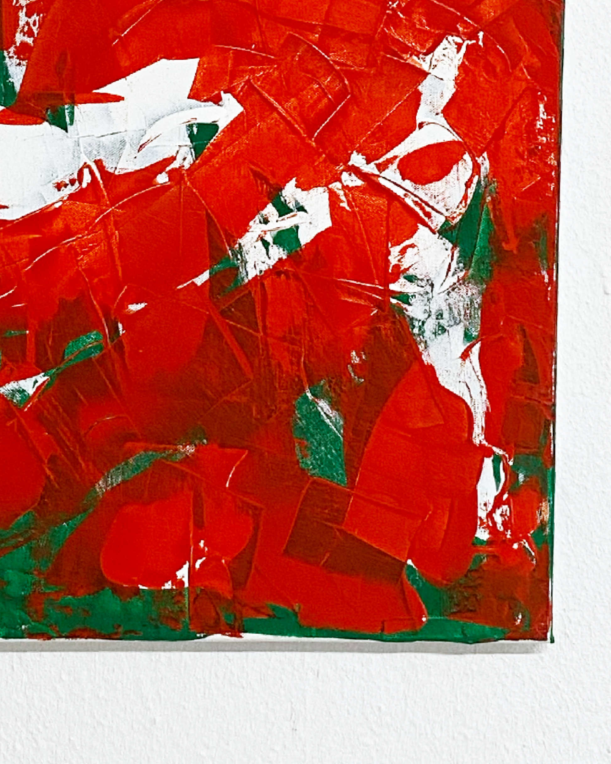 Es war ein grauer Tag im späten Winter, als ich plötzlich diesen starken Drang spürte, Farbe auf die Leinwand zu bringen. In mir gärte bereits das erste Grün – nicht draußen, noch nicht. Aber ich wusste, es ist nah. Der Moment, in dem das Weiß des Winters aufbricht und das Leben in leuchtendem Rot und jungem Grün hindurchschießt. Mit kräftigem Rot, frischem Grün und leuchtendem Weiß erzählt dieses Unikat vom Aufbruch der Natur – und vom inneren Erwachen.