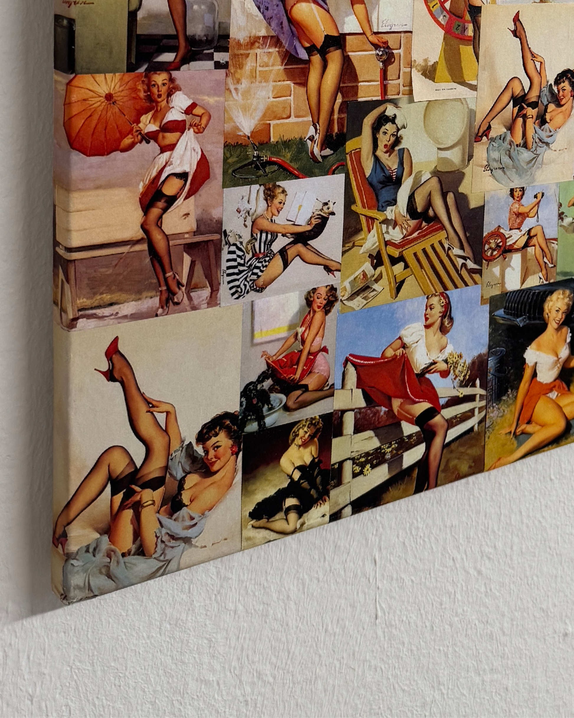 Wer ist „Pinapilla“? Das war ein spontaner, humorvoller Kunstname, der sich aus „Pin-up“ und einem erfundenen, feminin klingenden Zusatz zusammensetzt – quasi eine ironisch-verliebte Personifikation dieser Damen der 1940er, 1950er Jahren. Dann tauchten sie auf, in einer Zeit des Aufbruchs und gesellschaftlichem Wandel, auf der Suche nach Glamour, Farbe, Leichtigkeit und Frohsinn. Die Pin-up-Girls. Gemalt von Künstlern wie Gil Elvgren oder Alberto Vargas. Sie waren nicht einfach nur Frauen – sie waren ein Statement für Schönheit, Selbstbewusstsein, Witz und Weiblichkeit. Nie ganz nackt – aber immer entwaffnend. Sie waren nicht vulgär, sondern kunstvoll überzeichnete Alltagsgeschichten mit verrutschten Kleidern. Sie brachten ein Augenzwinkern in eine Zeit, in der Lachen selten war und ist Erinnerung, wie sehr Kunst in ihrer charmantesten Form Trost spenden kann.